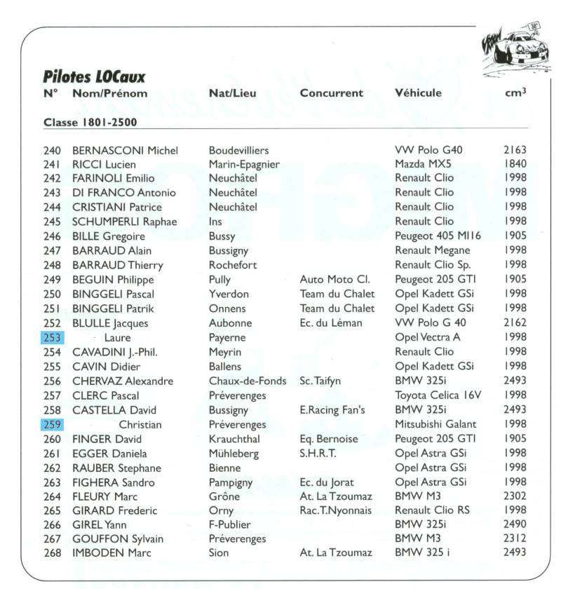 Jean-Daniel pour la reconnaissance Christian et sa femme pour les vivres Jean-Marc pour les infos Corinne pour les photos et la vidéo et à tous les pilotes hyper amicaux. Après la course c'est autre chose :-)